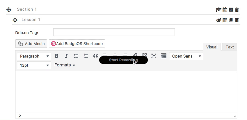 This eLearn Commerce Addon will syncronize all tags you create in your Drip.co Account and will auto-complete them upon text entry.
