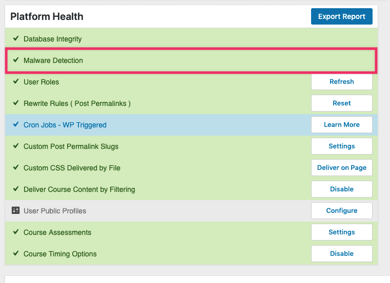 Malware is there, eLearnCommerce Platform Health detects it, reports it back to you, you click “resolve”.