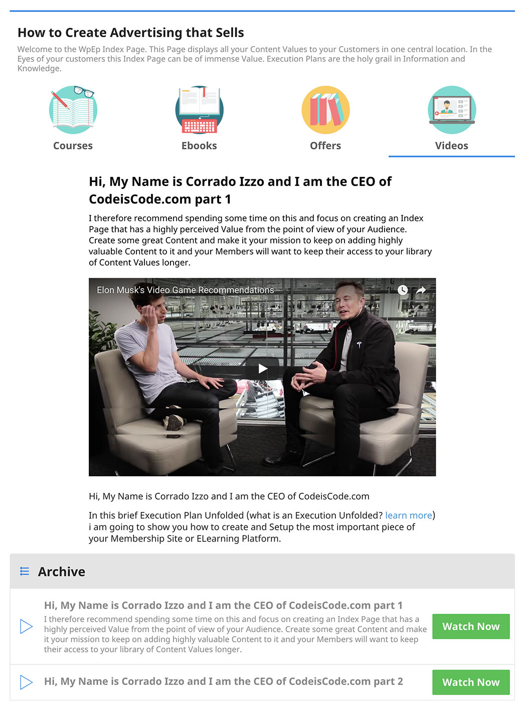 Here they can access your Courses, ebooks, offers, video archives, book-marked content, track their progress, continue learning where they left off, collect achievements, badges, certificates and interact with others.