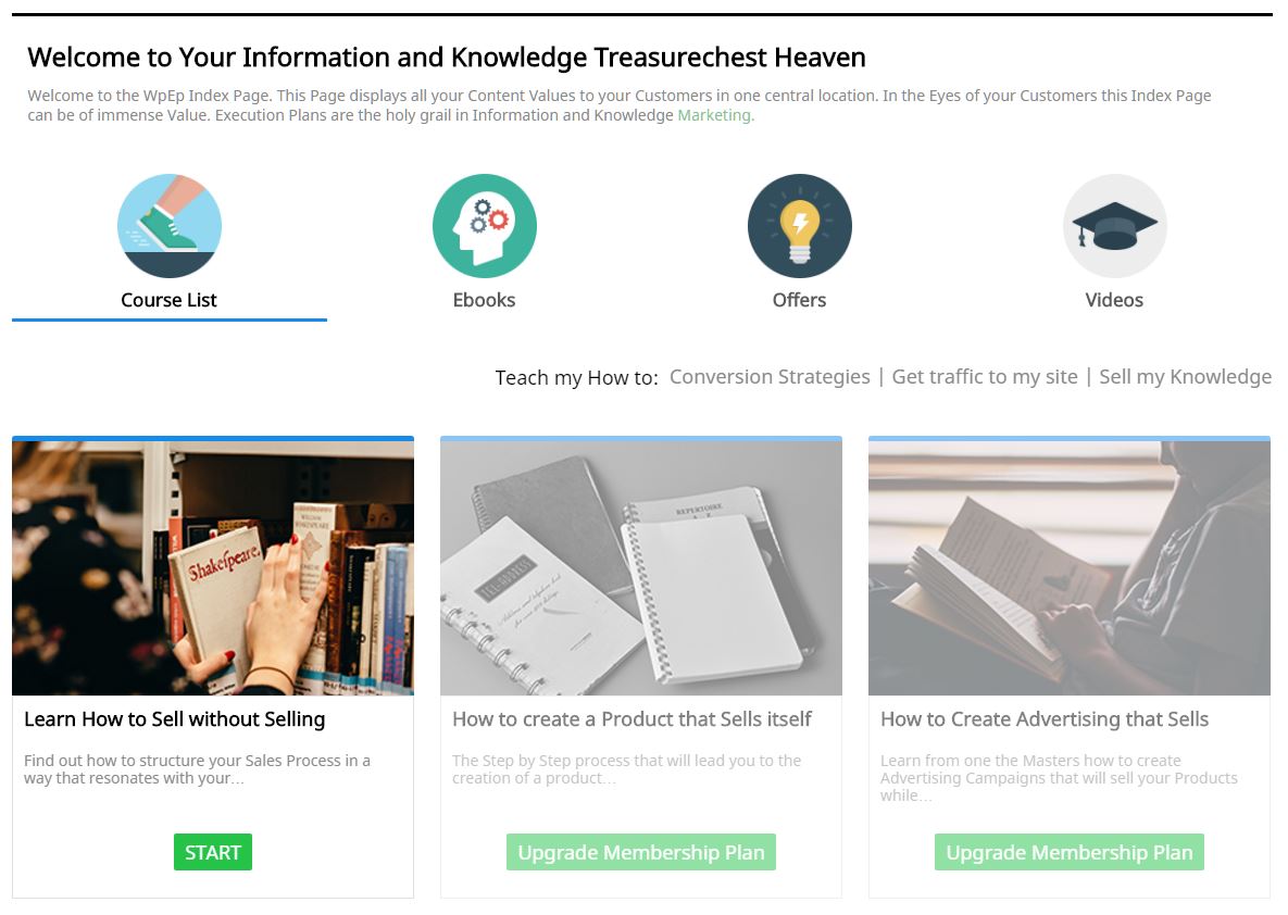 Set a Membership Upgrade and/or Upsell URL on the Content Level for each single Course, Execution Plan, Ebook or Video Content.